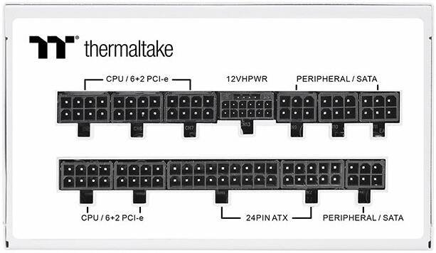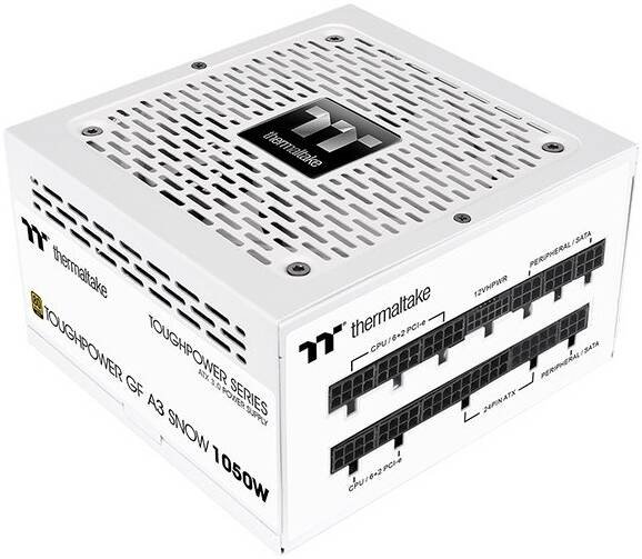 Thermaltake Toughpower GF A3 Snow Power Supply, 1050W Power, 80 Plus Gold Efficiency, PCIe Gen 5 Ready, Japanese Main Capacitor, Active PFC, 120mm FDB Fan, White