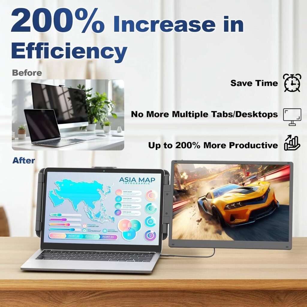 - Boost Productivity by 200%: Supports both extended and mirror display modes. Easily manage multiple tasks, meetings, and entertainment at once without switching windows. Perfect for office, study, travel, and business presentations.