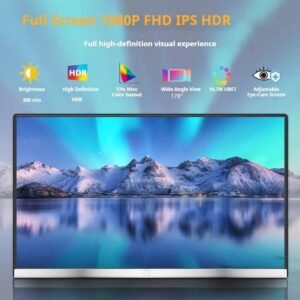V2COM P4 Portable Monitor, 16″ IPS Display, FHD Resolution, 60Hz Refresh Rate, 1ms Response Time, HDR Technology, 16.7m Color Display, Adjustable Eye-Care Screen, Black