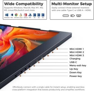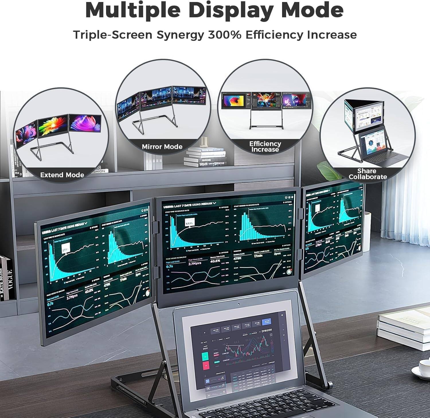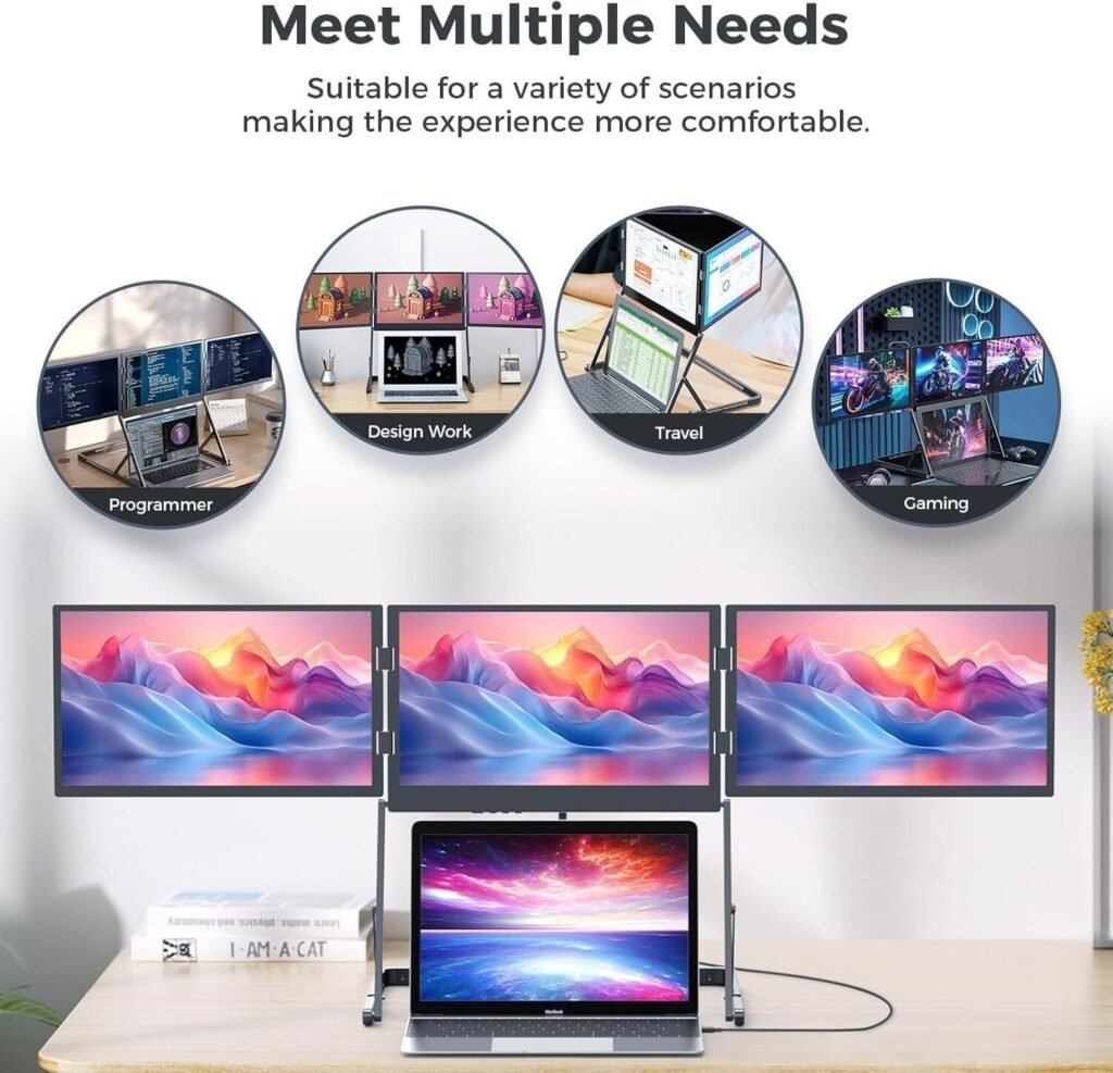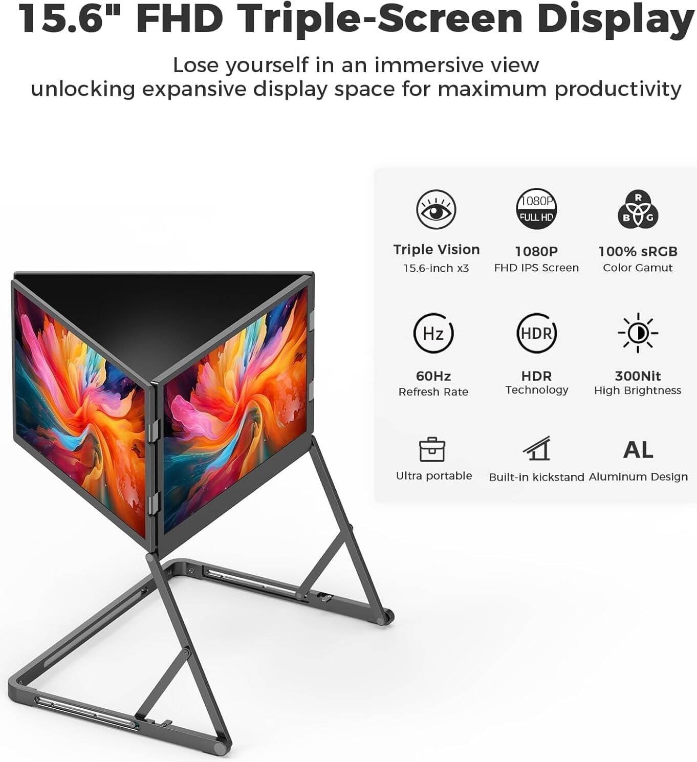 V2COM Q1 Quad Triple Laptop Monitor Extender 15.6″ FHD 1080P IPS Portable Screen with HDR, 180° Rotation, Plug & Play, Compatible with Windows/macOS (M1/M2/M3)