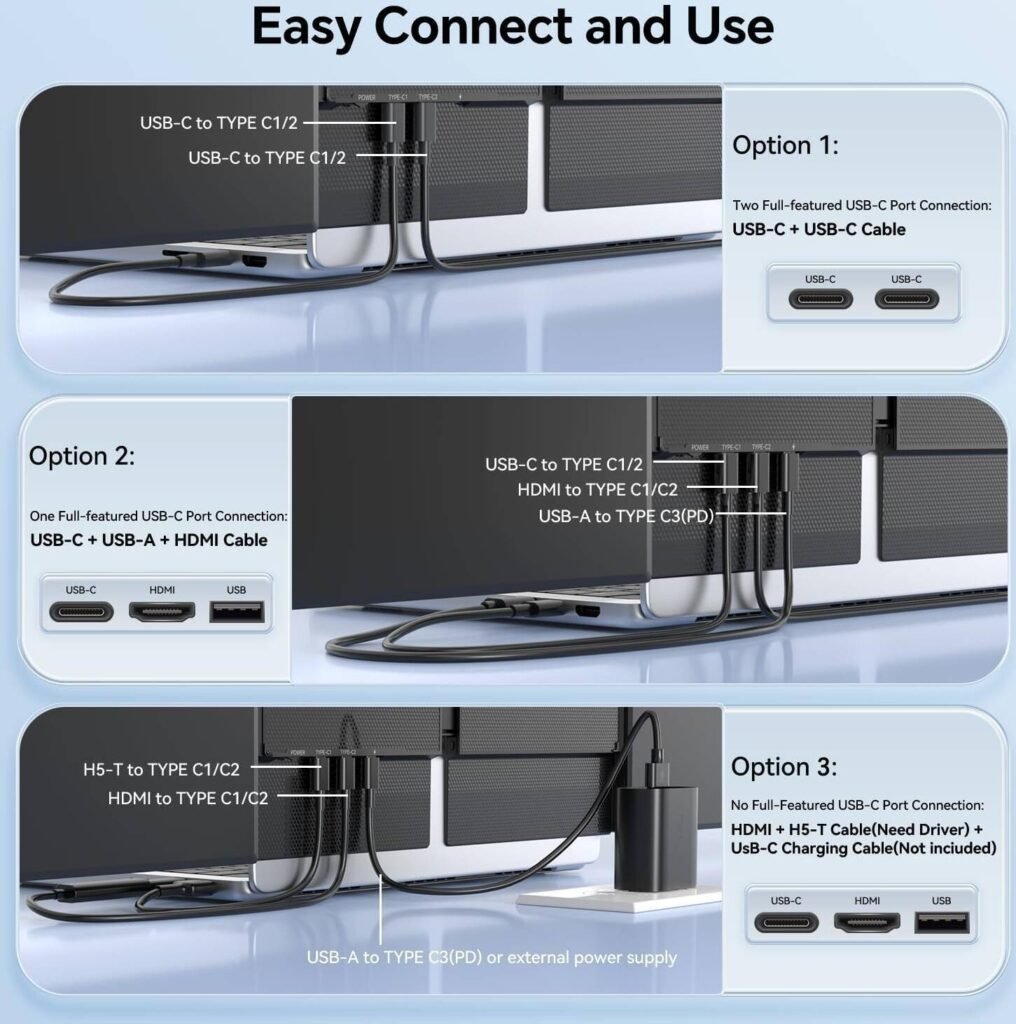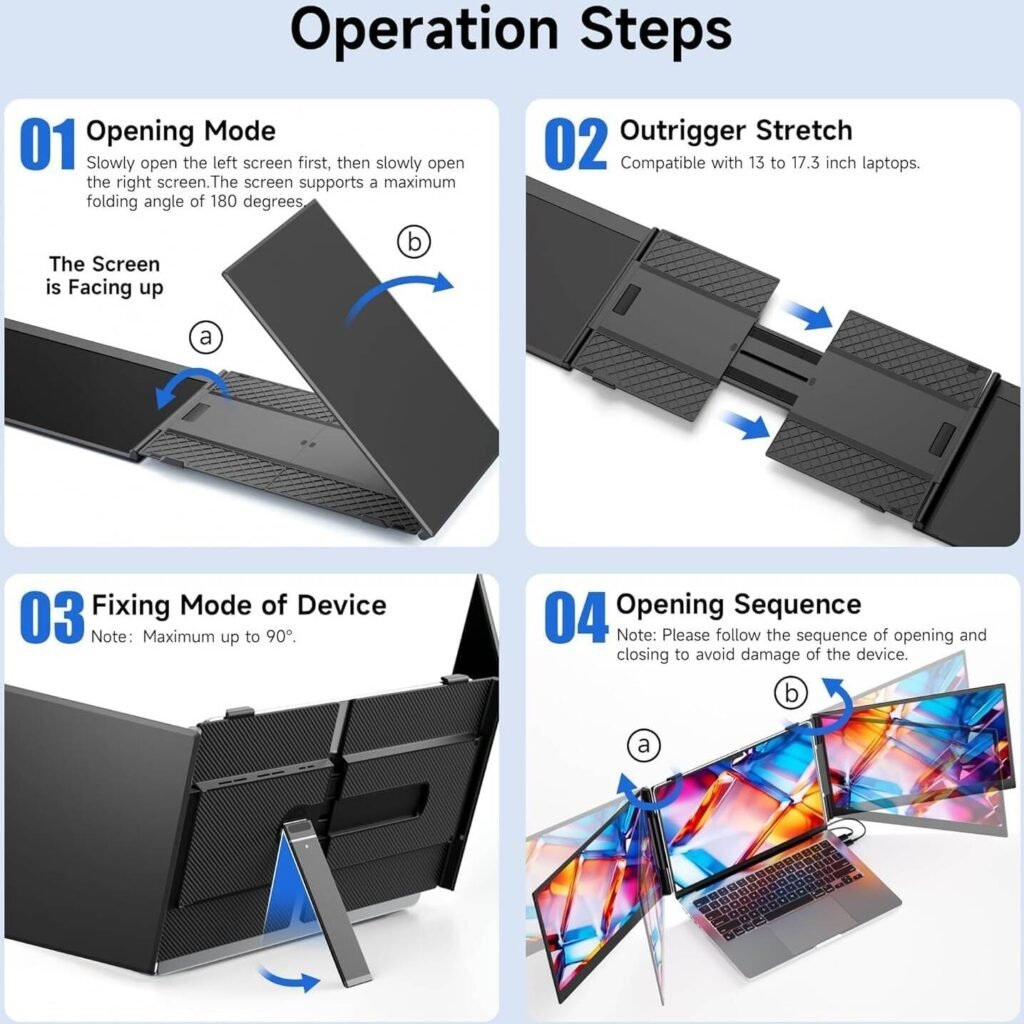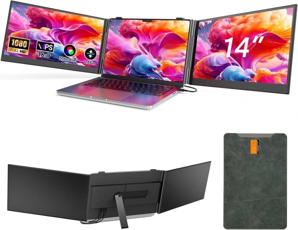 V2COM S8 Pro 14″ Triple Laptop Screen Extender, 1080P FHD IPS Ultra-Slim Portable Dual Monitor for Laptop, Lightweight 2.2lbs (1000g), USB-C & HDMI Plug and Play, Fits 13-17.3″ Laptops