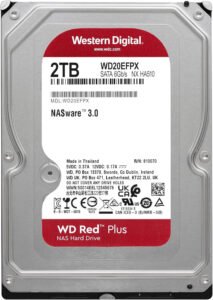 WD Red Plus 2TB SATA 6Gb/s 3.5″ NAS Internal Hard Drive , 64MB Cache, 5400rpm Speed, Up to 175 MB/s Sustained Transfer Rate, 1 Million Hours MTBF, Supports up to 180 TB/yr Workload Rate