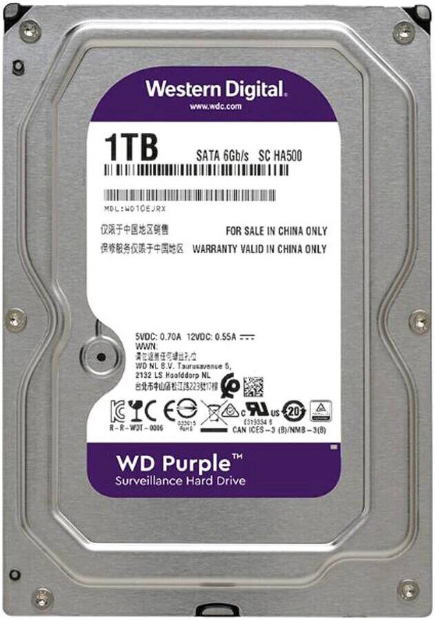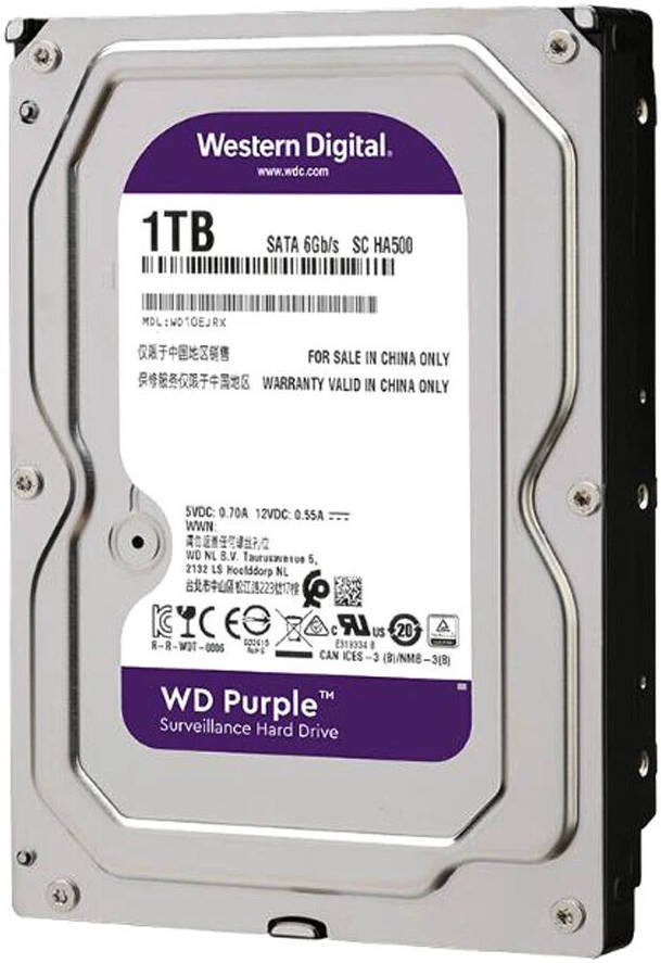 Western Digital Purple Surveillance Hard Drive, 1TB Capacity, 5400 RPM, 64MB Cache, SATA 6Gb/s 3.5″ Internal HDD, Optimized for 24/7 CCTV DVR/NVR Systems, AllFrame Technology