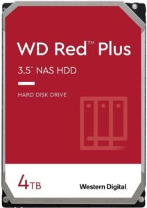 Western Digital Red Plus 4TB SATA 6Gb/s 3.5″ NAS Hard Disk Drive, 5400 RPM Class,128MB Cache, 3D Active Balance Plus, Up to 180 TB/yr Workload Rate, NASware Firmware