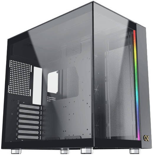 - Super-tower case with tempered glass front and side panels for elegant component display.