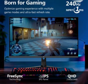 Z-EDGE UG27QS Gaming Monitor, 27″ IPS Display, QHD Resolution, 240Hz Refresh Rate, 1ms (MPRT) Response Time, AMD FreeSync Support, Black