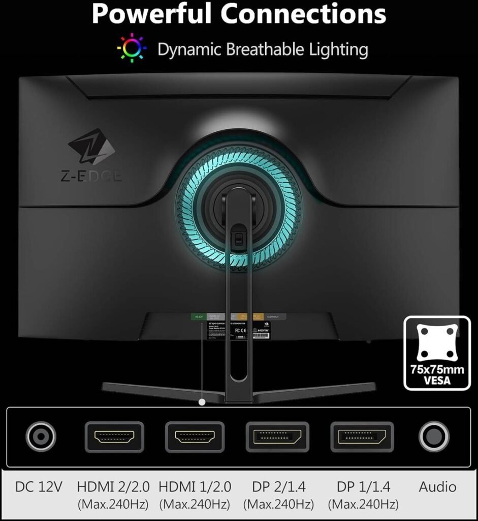 Z-EDGE UG32P Curved Gaming Monitor, 32″ VA Display, FHD Resolution, 240Hz Refresh Rate, 1ms (MPRT) Response Time, 1500R Curvature, AMD FreeSync Premium Technology, Black
